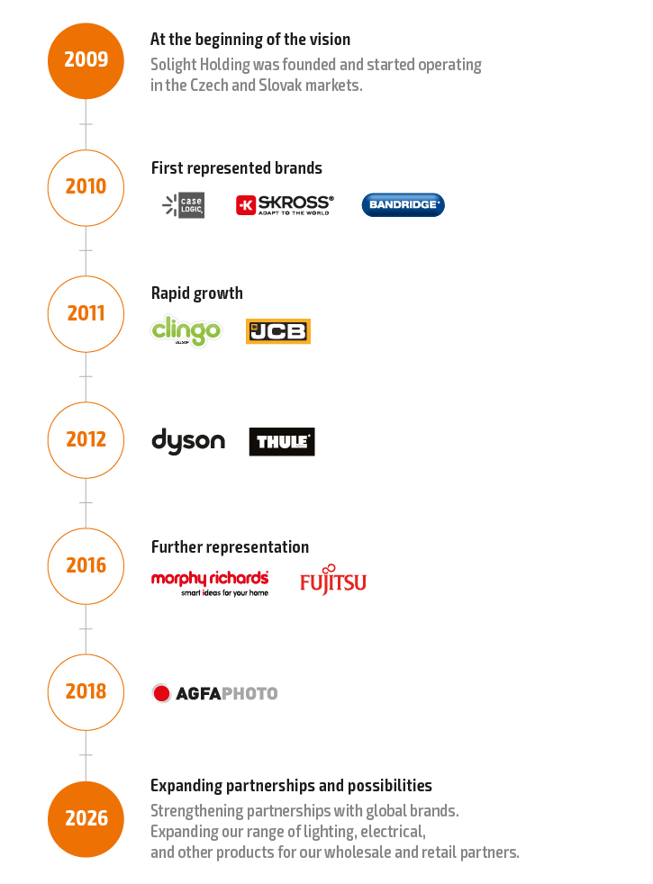 Solight was established in 2009. From the very beginning, we focused on the distribution of wiring material and appliances, and thanks to persistent efforts, we gained a strong position on the Czech and Slovak markets in a short time.