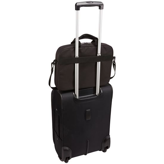 - Útlá kompaktní taška s polstrovaným úložným prostorem pro notebook do velikosti 14".