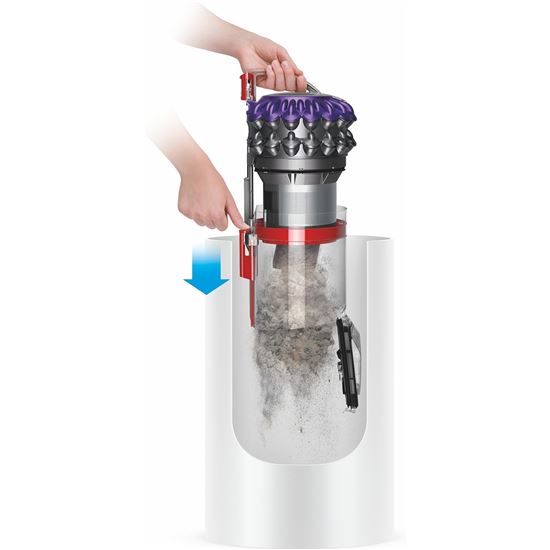 Jiné vysavače, když se převrhnou, zůstanou ležet. Pouze podlahový vysavač Dyson Big Ball se po převržení sám vrátí zpět na kolečka. - Vylepšené hygienické vyprazdňování odpadní nádoby