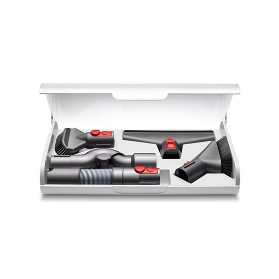 Volně stojící design navržený k uložení vysavače příslušenství Dyson Cyclone V10™.Obsahuje 5 dalších nástavců.Úhledně ukládá a dobíjí.Uložení na podlaze - pro dobíjení není nutné připevnit stanici ke zdi. Navrženo pro optimalizaci úložného prostoru pro vysavač Dyson Cyclone V10™ a jeho příslušenství. Umožňuje snadný přístup k příslušenství během úkliduAdaptér pro vysávání nad hlavouHubice na matraceProdlužovací hadiceJemný mini kartáč na prachKartáč na odolné nečistoty