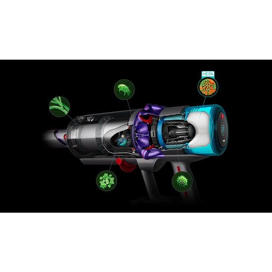 Vyspělý 10článkový lithium iontový akumulátor zajišťuje nejdelší dobu chodu u akumulátorového vysavače Dyson.5 Akumulátor vysavače Gen5detect™ má o dva články víc, než měl přecházející model Dyson V15 Detect™. Díky nim poskytuje vyšší napětí a vyšší výkon. - Důkladný úklid celého domu