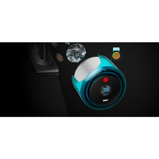 Automatický režim automaticky upravuje sací výkon pro různé typy podlah, aby se maximalizovala výdrž akumulátoru. Režim Boost je určen pro intenzivní jednorázové čištění silně znečištěných ploch a skvrn a režim Eco poskytuje dlouhou dobu chodu pro vysávání různých povrchů. - Vyměnitelný akumulátor
