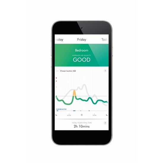 Automaticky detekuje hladiny znečišťujících látek PM2,5, PM10, VOC, NO2 a informace o těchto údajích o kvalitě ovzduší předává do aplikace. - Vytváří silný proud vzduchu.