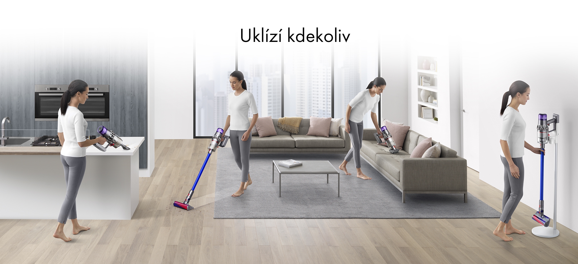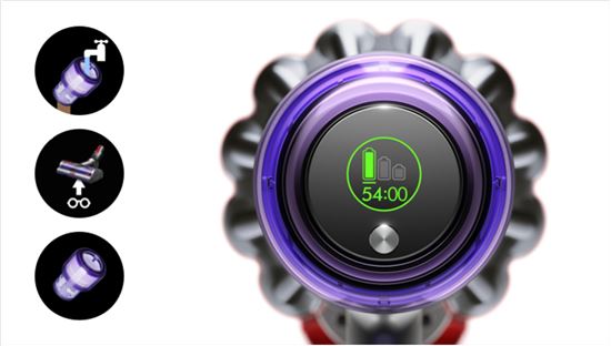 Efektivní úklid s výkonným vysavačem Dyson. Trvale vysoký výkon akumulátoru a hygienický systém vyprazdňování sběrné nádoby. Výkon systému je měřen a zobrazován v reálném čase na LCD displeji pro ještě lepší přehled o úklidu.