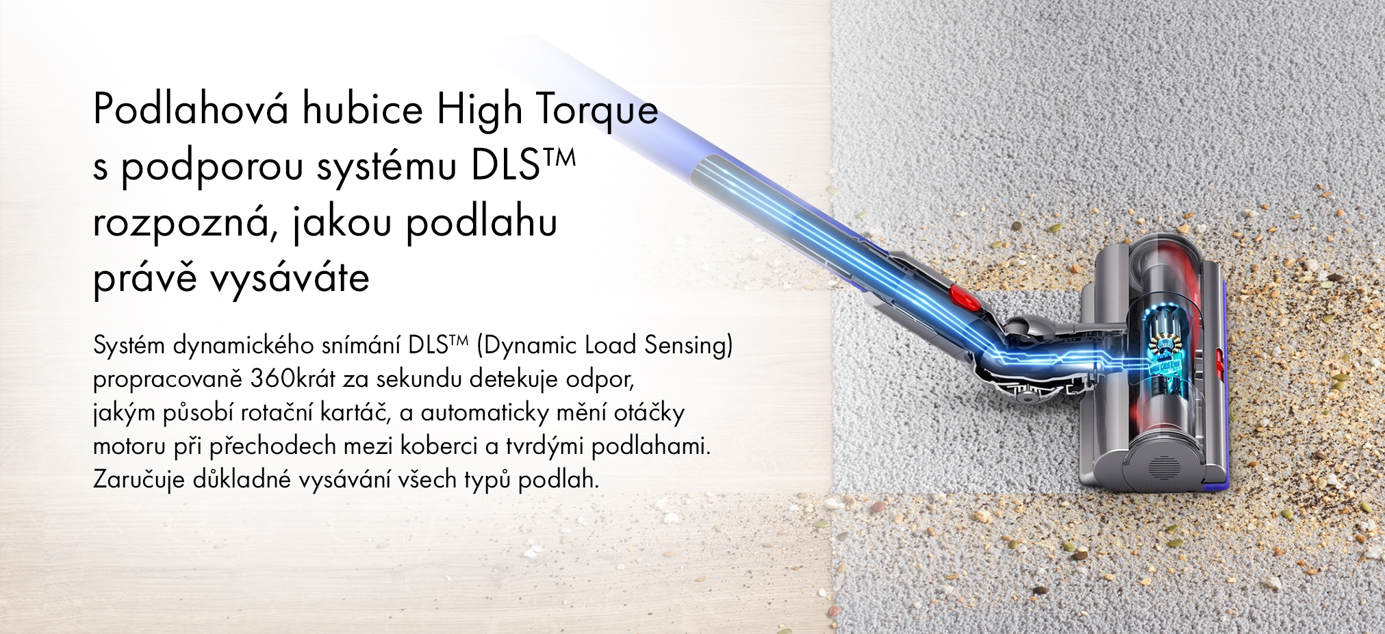 Nejvýkonnější podlahová hubice Dyson. Integrovaný digitálně řízený motor otáčí rotačním kartáčem až 60 krát za sekundu. Tlačí tuhé nylonové štětiny hluboko do koberce a odstraňuje nečistoty a antistatická karbonová vlákna zachytávají jemný prach z tvrdých podlah.