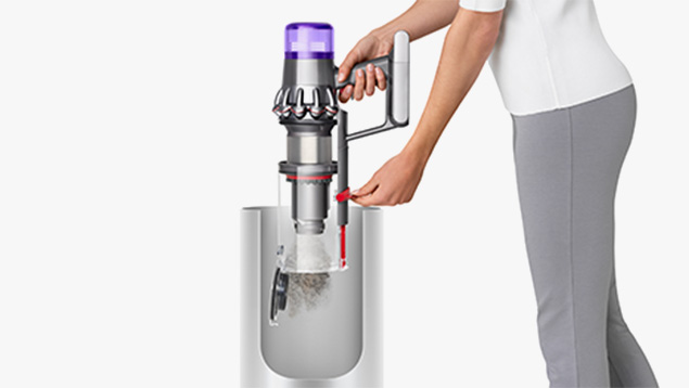 Technologie společnosti Dyson optimalizující výkon a spouštěcí tlačítko šetřící akumulátor pomáhají maximalizovat dobu chodu použitím pouze takového výkonu, který potřebujete. - Hygienické vyprazdňování mechanizmem "namířit a stisknout"