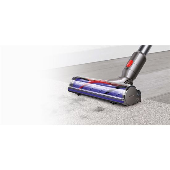- Podlahová hubice Motorbar™ s integrovanými zuby proti namotávání: Integrovaný motor otáčí rotačním kartáčem podlahové hubice až 60krát za sekundu. Díky němu tuhé nylonové štětiny kartáče pronikají hluboko do koberce a odstraňují nečistoty, zatímco karbonová vlákna zachytí jemný prach na tvrdých podlahách.