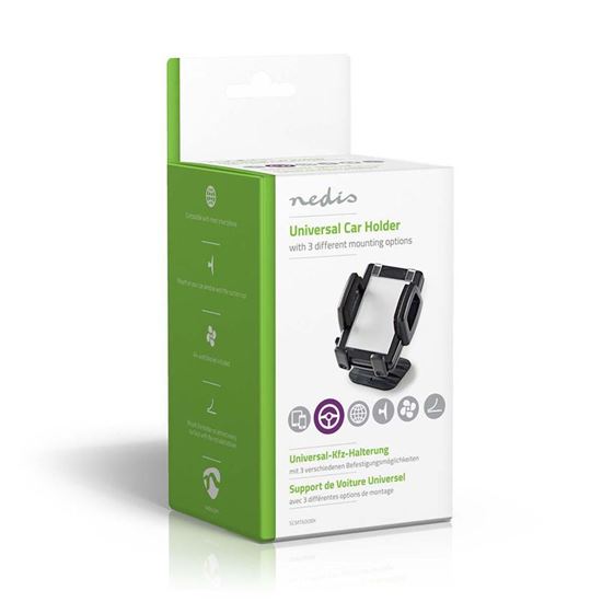 S tímto 3-v-1 univerzálním držákem do automobilu spolehlivě upevníte váš PDA, mobilní telefon nebo MP3 přehrávač. Upevňuje se přísavkou na sklo, speciální svorkou na větrací mřížku nebo nálepkou na palubní desku. Držák umožňuje vložení fotografie.
