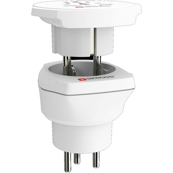 Adaptér SKROSS Combo World to Israel umožňuje bezpečné použití zařízení v izraelských zásuvkách. Připojí uzemněné i neuzemněné vidlice přívodních kabelů, bez problémů zapojíte vše od notebooků, telefonů až po fény. A díky univerzálnímu nástavci nezáleží úplně na tom, z které země připojovaný spotřebič je.