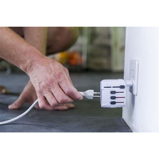 Navržen ve Švýcarsku s důrazem na bezpečnost. Zajišťuje snadné a bezpečné použití po celém světě. Propojí evropské přívodní kabely se zásuvkami v Austrálii, Číně, Velké Británii, USA, Švýcarsku, Itálii a Brazílii. Vyměnitelná pojistka poskytuje dodatečnou ochranu.