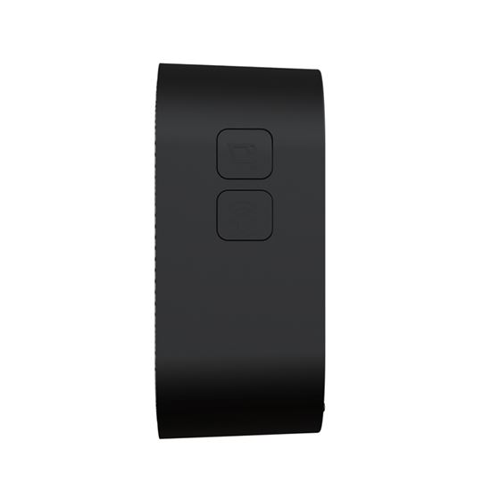 Matné černé provedení s jemnou strukturou na čelní straně imituje vzhled textilie, což dodává zvonku tradiční a domácký charakter. Design je jednoduchý, funkční a vhodný pro uživatele, kteří hledají klasické a nenápadné řešení pro každodenní použití.