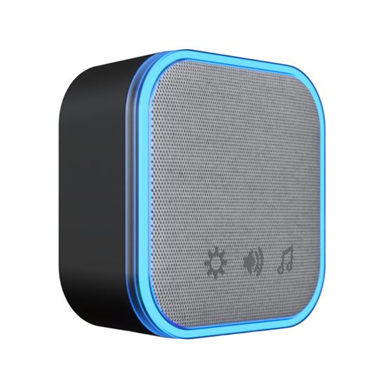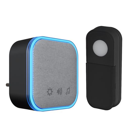 Zvonek nabízí výběr ze 36 melodií a 4 úrovní hlasitosti. Ovládací tlačítka jsou umístěna přímo na přední straně pod látkovým dekorem – to výrazně usnadňuje přístup a zjednodušuje nastavení funkcí bez nutnosti otáčet nebo odpojovat zařízení. Při zazvonění se rozsvítí velký světle modrý LED rámeček, který zajišťuje dobře viditelnou světelnou signalizaci. Ideální i do hlučnějších prostor nebo pro osoby se zhoršeným sluchem.