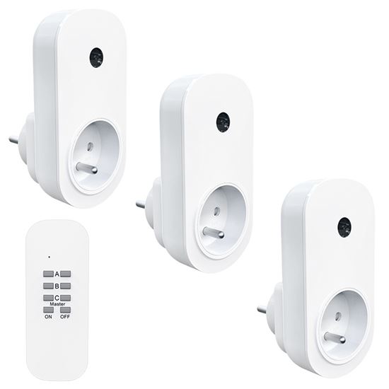 Tato sada obsahuje 3 zásuvky a 1 dálkový ovladač s jednoduchým spárováním. Maximální výkon je 2000W (AC 230V/8,7A) a umožňuje ovládání až 4 zásuvek. Má dětské pojistky a dosah signálu na otevřeném prostranství až 40 m. Zásuvky lze manuálně přiřadit k ovladači. Přenosová frekvence je 433,92 MHz. Napájení zásuvek je AC 230V, 50Hz, ovladač je napájen baterií CR2032 (součást balení). Pracovní teplota: 0°C až +35°C. Barva: bílá.