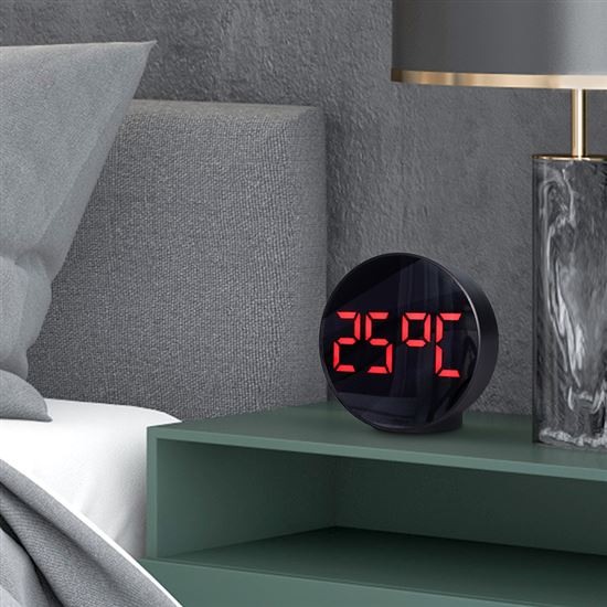 Digitální hodiny s LED displejem a teploměrem.Tyto hodiny zobrazují čas a teplotu na LED displeji s možností přepínání mezi jednotkami °C/°F. Disponují třemi úrovněmi jasu a nočním režimem, který automaticky snižuje jas během nastaveného časového intervalu. Jednoduché nastavení budíku s možností jeho vypnutí zajistí pohodlné používání. Napájení 3× AAA bateriemi nebo přes DC 5V.
