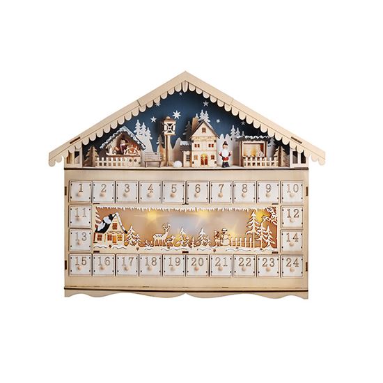 Stylový LED adventní kalendář ve tvaru horské chaty je nádhernou dekorací, která zpříjemní čekání na Vánoce. S rozměry 50 × 40 × 6 cm působí velmi dominantně, a přesto útulně. Vyrobený z kvalitního dřeva v přírodní hnědé barvě přináší do domácnosti pocit tepla a tradiční sváteční atmosféru. Kalendář je vybaven 10 teple bílými LED diodami, které decentně osvětlují jednotlivé prvky dekorace a vytvářejí příjemné večerní osvětlení.