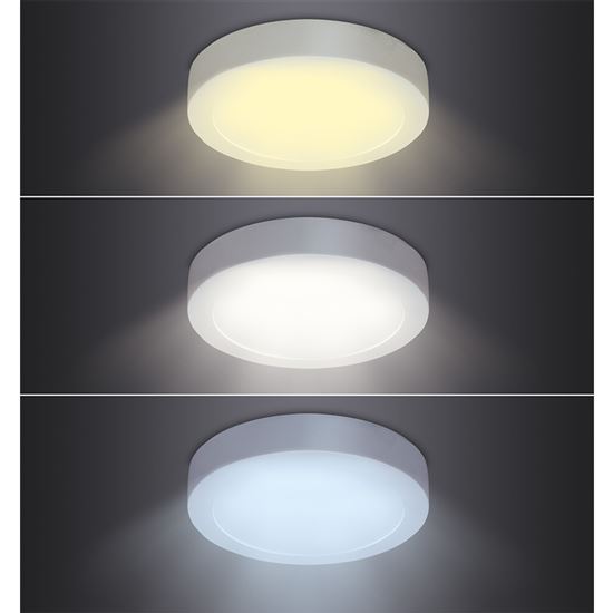 Silný a efektivní kulatý přisazený LED panel s výkonem 24 W je navržen pro osvětlení větších místností s důrazem na kvalitu a rovnoměrné rozložení světla. Pomocí přepínače můžete volit mezi teplotami světla 3000K, 4000K nebo 6000K a přizpůsobit tak atmosféru prostoru dle potřeby. Se světelným tokem 1800 lm a širokým úhlem svícení 160° je ideální do kanceláří, obývacích pokojů nebo komerčních prostor.
