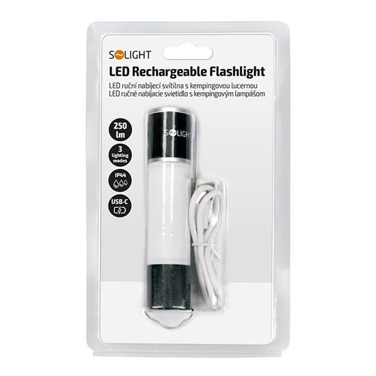 Solight LED nabíjecí ruční svítilna s kampingovou lucernou, 250lm, power bank, Li-Ion