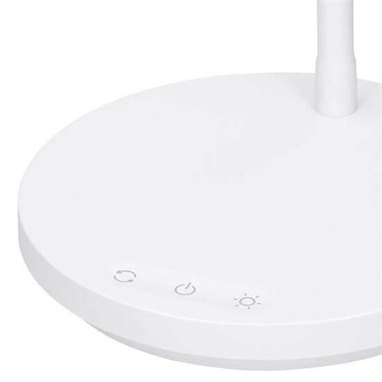 Tato bílá verze praktické stolní lampičky nabízí stejné funkce jako její černý protějšek – plynulou změnu teploty světla (3000K/4000K/6500K), tři úrovně jasu a jednoduché dotykové ovládání. Skvělá volba pro psací stůl, noční stolek i domácí kancelář.