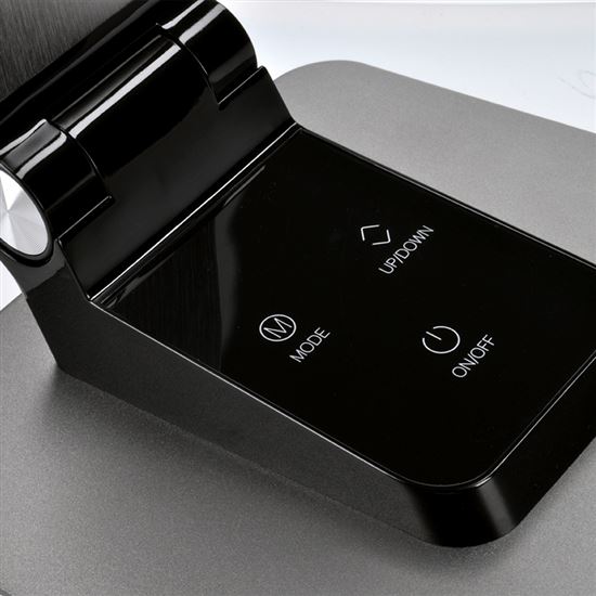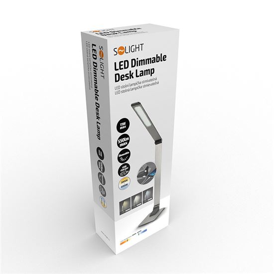 Prémiová stolní lampička z broušeného hliníku spojuje elegantní vzhled s výkonným a flexibilním osvětlením. Uživatel si může zvolit teplotu světla mezi 3000K, 4500K a 6000K a přizpůsobit tak osvětlení svým potřebám. Díky třístupňovému stmívání je možné regulovat intenzitu světla jednoduše dotykem prstu.