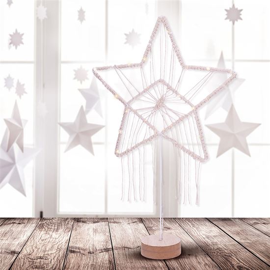 vánoční hvězda pletená se stojánkem a s řetezem s LED diodami