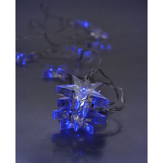 Vneste do svého interiéru zimní pohádkovou atmosféru s LED řetězem s modrými světly a motivem hvězd. Tento designový řetěz s 10 LED diodami a průhledným kabelem je ideální dekorací na okno, poličku nebo do dětského pokoje. Každá dioda je umístěna ve vzdálenosti 15 cm, osvětlená část dosahuje délky 1,5 metru, přívodní kabel pak měří 1 metr.