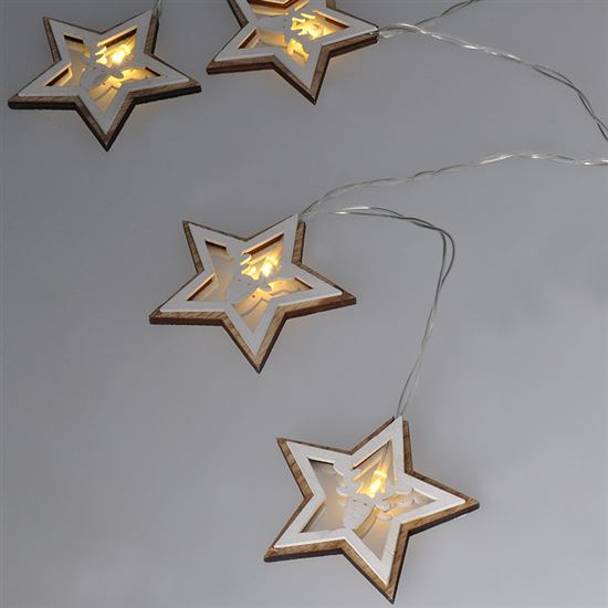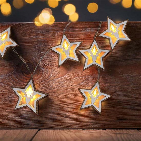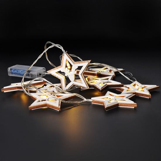 - vánoční dekorativní řetěz s dřevěnými hvězdami a LED diodami