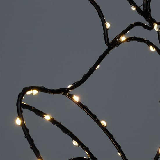 Se stupněm krytí IP44 je dekorace odolná vůči povětrnostním podmínkám, což ji činí ideální volbou pro venkovní použití. Robustní kovová konstrukce v černé barvě zajišťuje stabilitu a dlouhou životnost. S rozměry 32 × 50 cm skvěle vynikne v zahradě, na terase nebo u vchodu do domu.