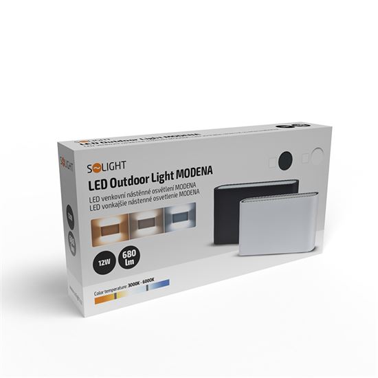 Solight LED venkovní nástěnné osvětlení Modena, 12W, 680lm, 120°, černá