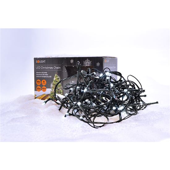 Řetěz disponuje osmi světelnými režimy a je uzpůsoben pro venkovní i vnitřní použití. Dlouhá životnost LED diod a nízká spotřeba energie zaručují spolehlivý provoz a úsporný provoz. Moderní design ve spojení s čistým bílým světlem je vhodný pro minimalistické i luxusní dekorace.