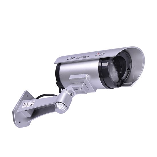 Maketa bezpečnostní kamery – levná a účinná prevence.Realisticky vypadající maketa bezpečnostní kamery pomáhá předcházet vloupání a odradit nežádoucí osoby. Vzhled skutečné kamery, včetně kabelu, a blikající LED dioda napájená bateriemi vytváří dojem aktivního monitorování. Snadná montáž na stěnu či vodorovnou plochu, vhodné pro vnitřní i venkovní použití (IP44). Instalační sada součástí balení.