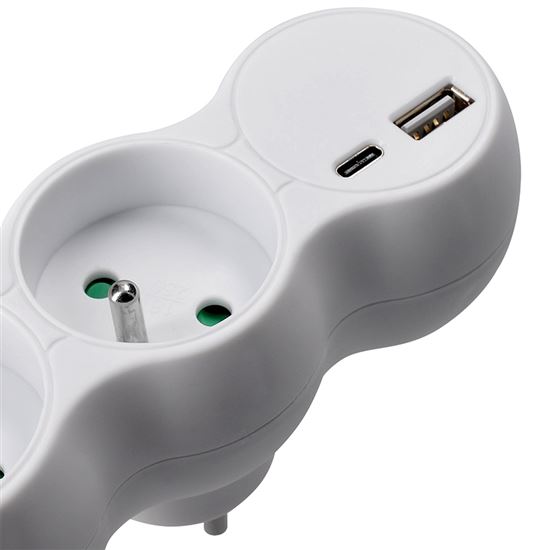 Dvě zásuvky zvládnou celkovou zátěž až 3680 W a umožní připojit jakýkoli spotřebič v kuchyni, obýváku, ložnici nebo dílně. Díky natočení horních zásuvek lze lehce manipulovat s USB kabely ve spodní zásuvce. Oba kabely spotřebičů směřují směrem dolů a netrčí různě v prostoru. Zásuvky jsou navíc vybaveny dětskými pojistkami, které zajistí bezpečný provoz i v domácnostech s dětmi. Díky USB-A a USB-C portům můžete pohodlně nabíjet i dvě zařízení současně. Perfektní pro veškerou USB elektroniku.