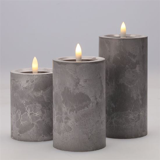 Vytvořte si elegantní atmosféru s LED svíčkami s efektem přirozeně blikajícího plamene a luxusním dekorem šedého mramoru. Tato sada tří svíček vnese do vašeho interiéru moderní a útulný vzhled bez nebezpečí otevřeného ohně.