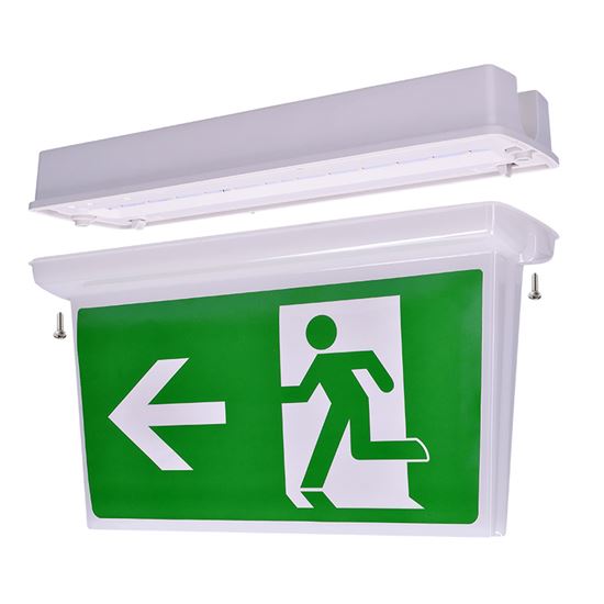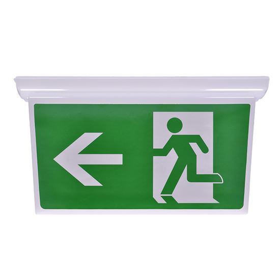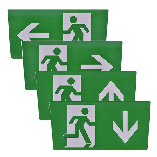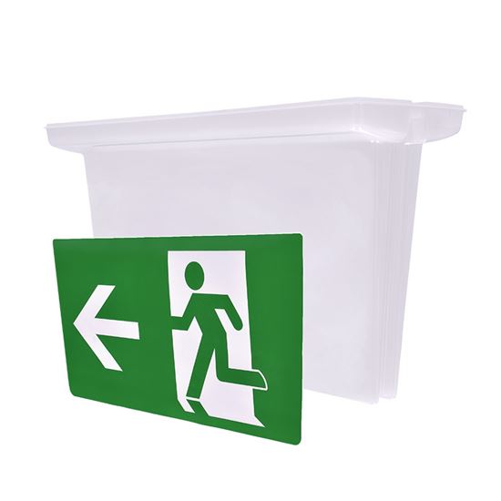 Cedule je vyrobena z odolného PC materiálu a má rozměry 352x185x110 mm. Lze ji snadno namontovat na stropní svítidla a doplnit o požadované značení podle konkrétní potřeby objektu.