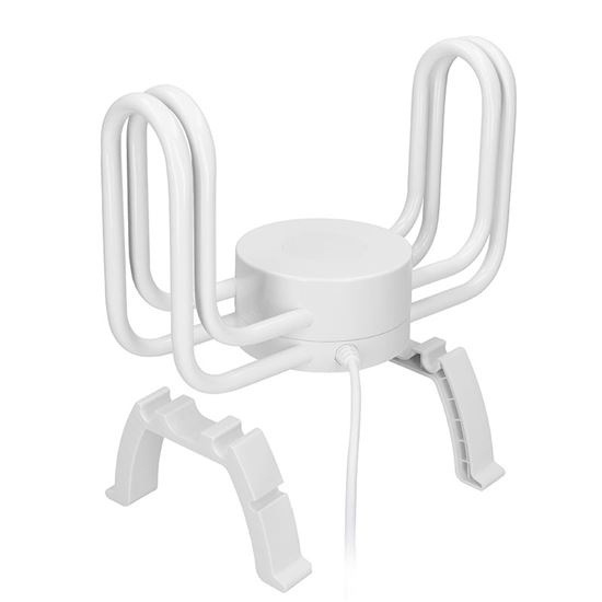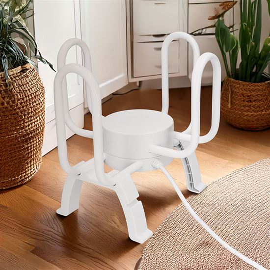 Sušák obuvi a rukavic pro až 2 páry najednou. Ovládání pomocí přepínače zapnutí/vypnutí se světelným indikátorem. Příkon 40 W a napájení 220–240 V/50Hz. Rozměry: 26 cm (šířka) x 30 cm (výška) x 25,5 cm (hloubka). Hmotnost: přibližně 0,9 kg. Ideální pro efektivní sušení obuvi a rukavic.