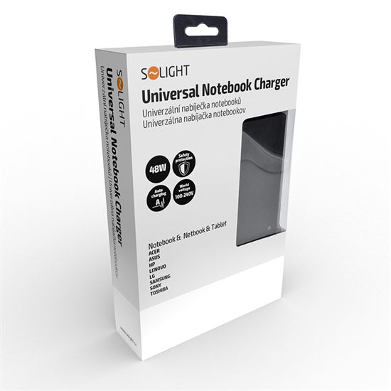 Univerzální napájecí zdroj pro notebooky – automatická detekce a široká kompatibilita.Tento univerzální napájecí adaptér s automatickou detekcí napětí a parametrů baterie umožňuje bezpečné nabíjení notebooků a netbooků. Nabízí výstupní napětí DC 15–20V (max. 2,4A, 48W) a 7 vyměnitelných DC konektorů kompatibilních se značkami ACER, ASUS, HP, Lenovo, LG, MSI, Samsung, Sony, Toshiba. Díky protizkratové a proudové ochraně (2,5A) je bezpečný pro dlouhodobé používání. Celosvětové použití (100–240V, 50–60Hz) umožňuje nabíjení kdekoli. Kompaktní rozměry (9,5 × 4,5 × 3 cm) a celková délka kabelu 2,4 m zajišťují praktičnost.