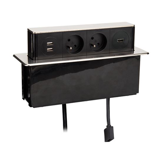 Solight USB výsuvný blok zásuvek, 2 zásuvky + HDMI + USB, nerez + plast, 3 x 1.5mm2, stříbrný