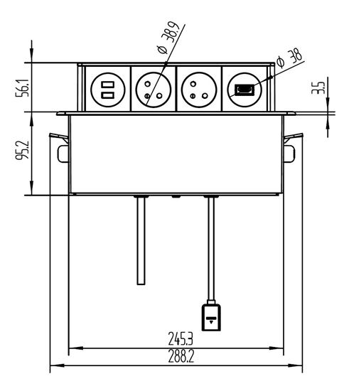 rozměr montážního otvoru v desce stolu: max. 25,0 x 6,5cm