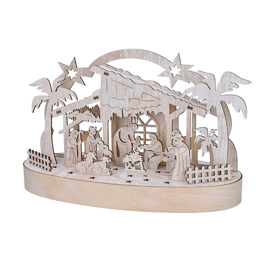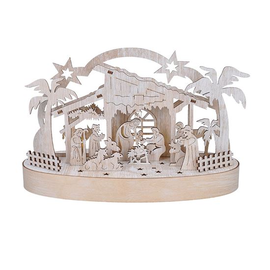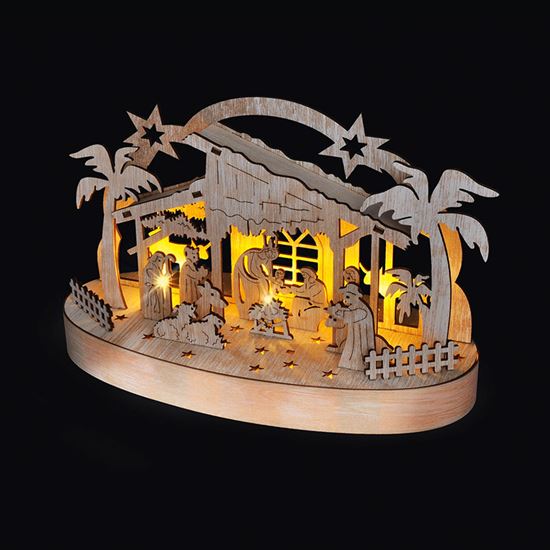 Klasický LED betlém v přírodní barvě dřeva přináší do vašeho domova tradiční vánoční atmosféru s nádechem elegance. Díky svým rozměrům 25 × 12 × 16 cm se hodí na komodu, poličku nebo sváteční stůl. Pět teple bílých LED diod jemně osvětluje střed scény a zvýrazňuje detaily postaviček i architektury. Betlém je vyroben z kvalitního dřeva a svou jednoduchostí se hodí do každého interiéru.