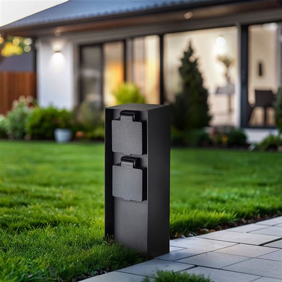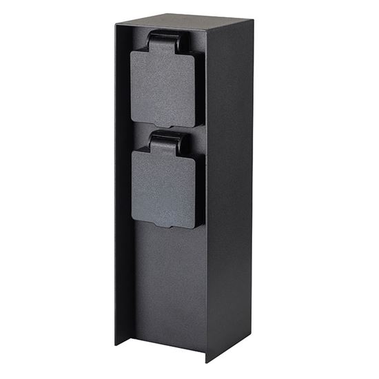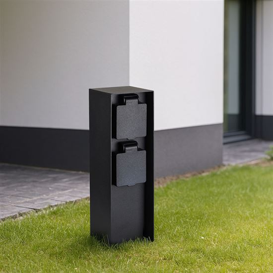 Dvě zásuvky s dětskými pojistkami jsou chráněny samouzavíratelnými krytkami, které brání vniknutí vlhkosti a nečistot. Díky krytí IP44 je sloupek vhodný i pro použití za deště nebo ve vlhčím prostředí. Zásuvky zvládnou zátěž až 3680 W (16 A při 230V~), což je ideální pro venkovní osvětlení, zahradní techniku i běžné spotřebiče. Vhodný pro domy, pergoly i firemní areály.