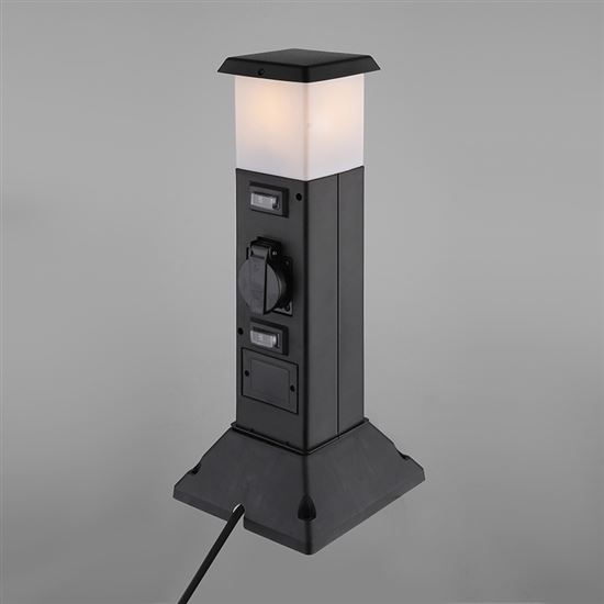 Dvě zásuvky s dětskými pojistkami a krytkami proti vlhkosti a prachu umožňují bezpečné připojení zahradní techniky, grilu nebo čerpadla. Každá zásuvka i světlo mají svůj vlastní vypínač pro pohodlné ovládání. Matná černá barva v kombinaci s černými krytkami zásuvek působí nenápadně a elegantně. Plastové tělo s krytím IP44 je odolné vůči vlhkosti i prachu. Do světla můžete vložit standardní LED žárovku s paticí E14. Ideální řešení pro stylové a bezpečné venkovní napájení.