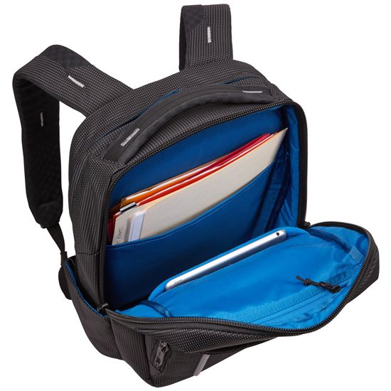 - Uspořádejte malou elektroniku a příslušenství v předním panelu s kapsami, elastickými poutky, kapsou na zip a systémem vedení kabelů PowerPocket pro nabíjení na cestách.