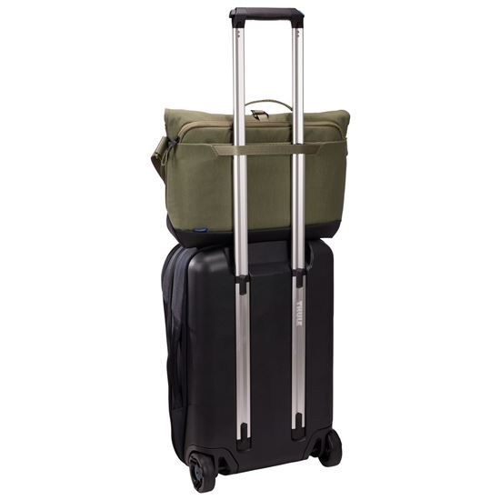 - Možnost připevnění k zavazadlu na kolečkách: Průchozí popruh umožňuje připevnit tašku k zavazadlu na kolečkách.