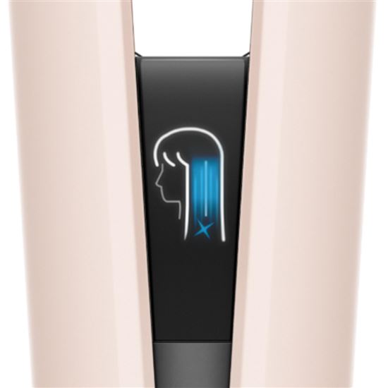 Žehlička sama rozpozná, kdy se vlasy nacházejí mezi rameny, a pokud mezi rameny nejsou, automaticky sníží úroveň proudění vzduchu - pro tišší a energeticky úspornější styling.