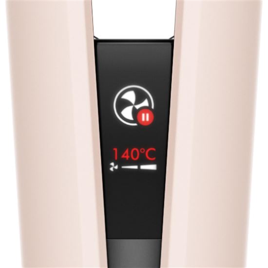 Barevný displej s vysokým rozlišením zobrazuje nastavení rychlosti proudění vzduchu a teploty pro snadnou orientaci při stylingu.