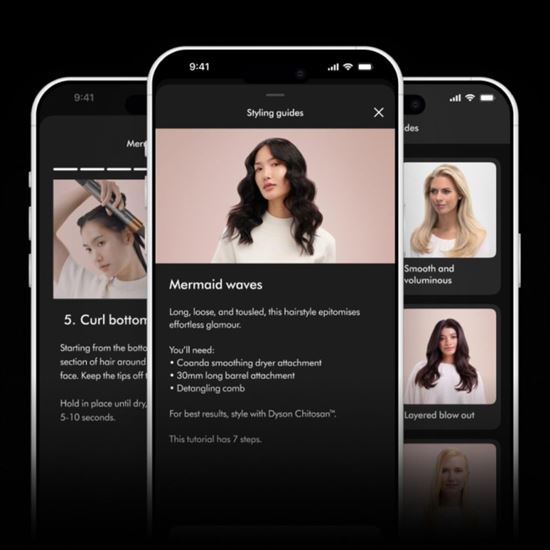 Aplikace MyDyson™ vám na základě vašeho osobního profilu vlasů nabízí inspiraci přesně odpovídající tomu, co vašim vlasům nejvíce vyhovuje. Můžete objevovat nové styly, které lichotí vašemu typu vlasů, nebo využít profesionální tipy a doporučení vytvořená přímo odborníky Dyson. Ať už chcete vytvořit jemné vlny, uhlazený vzhled nebo výraznější objem, aplikace vám poskytne návody krok za krokem i doporučení nástavců tak, aby byl výsledek vždy perfektní a snadno opakovatelný.