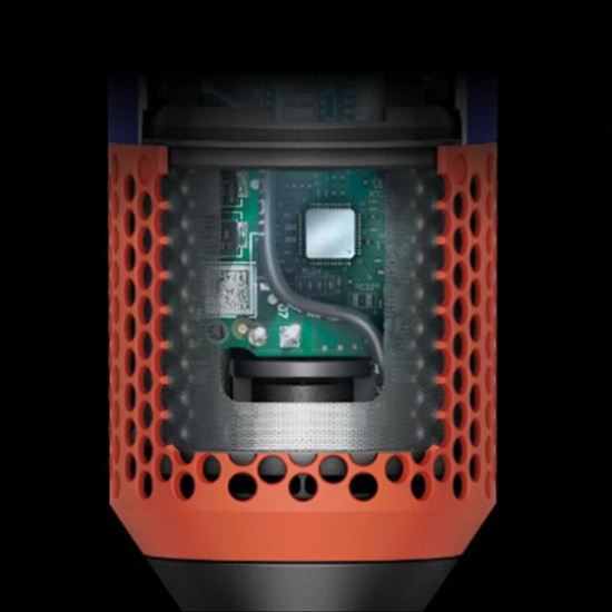 V srdci přístroje se nachází výkonný digitálně řízený motor Dyson, který se otáčí rychlostí až 110 000 otáček za minutu. Tato mimořádná rychlost vytváří silný proud vzduchu a dostatečný tlak k tomu, aby mohl vzniknout Coanda efekt – přirozené přilnutí vlasů k povrchu nástavce bez nutnosti extrémního tepla.
