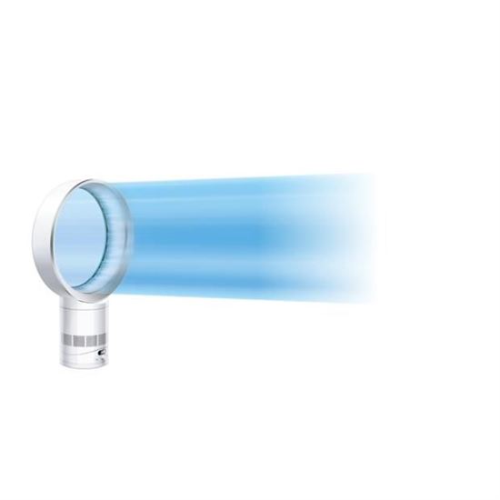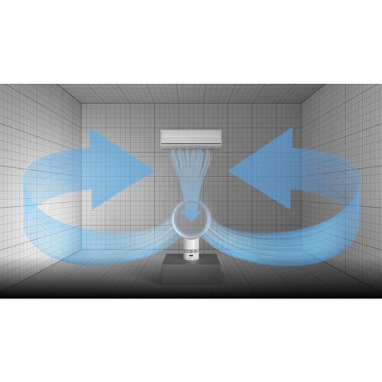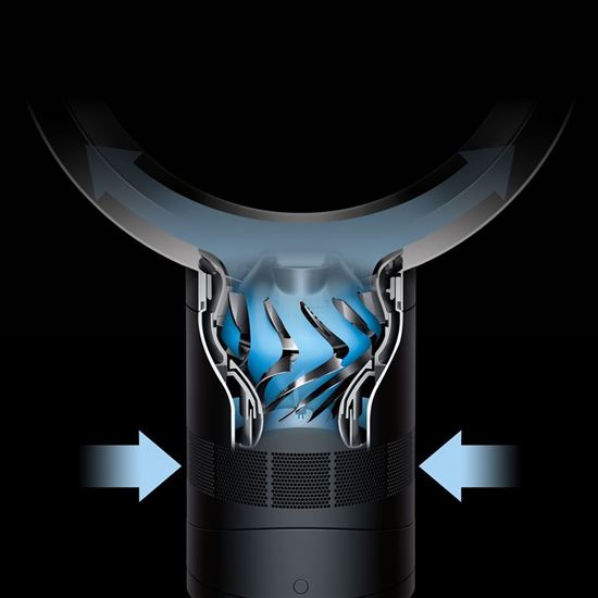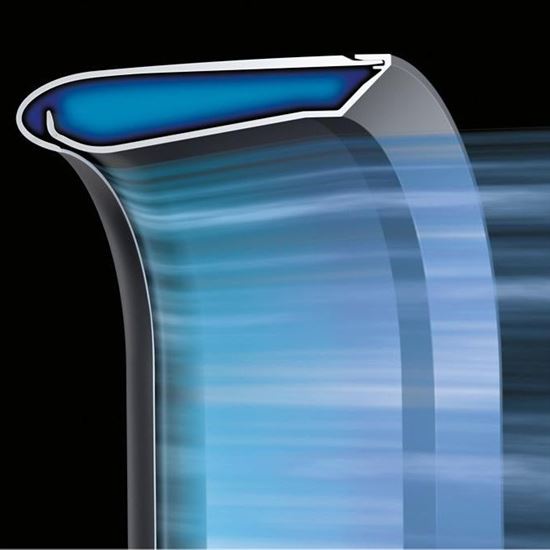 Patentovaná technologie Air Multiplier™ pro tiché a výkonné osvěžení. Technologie Air Multiplier™ zajišťuje plynulé proudění vzduchu vysokou rychlostí přes 370 l/s bez nepříjemných poryvů. Turbína vhání do prstence 27 litrů vzduchu za sekundu. Ten se průchodem přes aerodynamický profil urychluje a strhává okolní vzduch, a tím zvyšuje celkový průtok vzduchu.