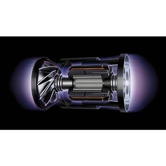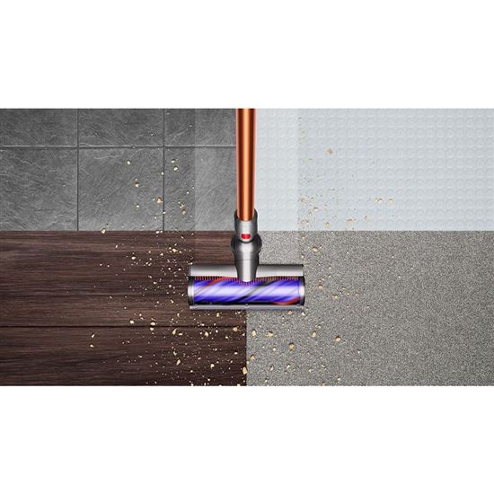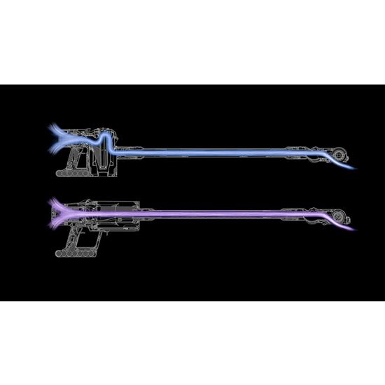 Tzv. "Point and shoot" uspořádání motoru, odpadní nádoby a cyklon umožňuje průchod vzduchu z podlahové hubice do cyklon v přímé linii. Toto provedení v kombinaci s výkonnějším digitálně řízeným motorem Dyson V10 zvyšuje v porovnání s vysavačem Dyson V8 sací výkon o 20 %.