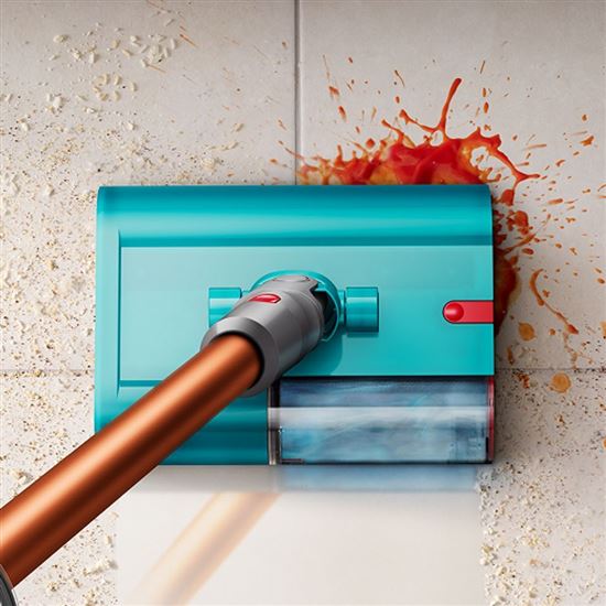 Některé vysavače pro vytírání zanechávají stopy a šmouhy. Podlahová hubice s mokrým rotačním kartáčem Dyson Submarine™ je navržena tak, aby odstraňovala a pohlcovala nečistoty a zanechala podlahu dokonale čistou.
