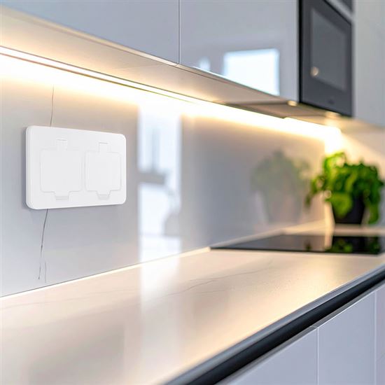 The socket is equipped with a double rubber seal that prevents water and dust from penetrating under the top cover and under the lids. The closed housing protects the internal structure from moisture penetration from the environment. IP55 protection allows it to be used even in humid or dusty environments, such as terraces, garden gazebos, around swimming pools or workshops, garages or corridors. It can easily withstand wet cleaning, whether mechanical or manual. Reliable operation is maintained even with regular use.